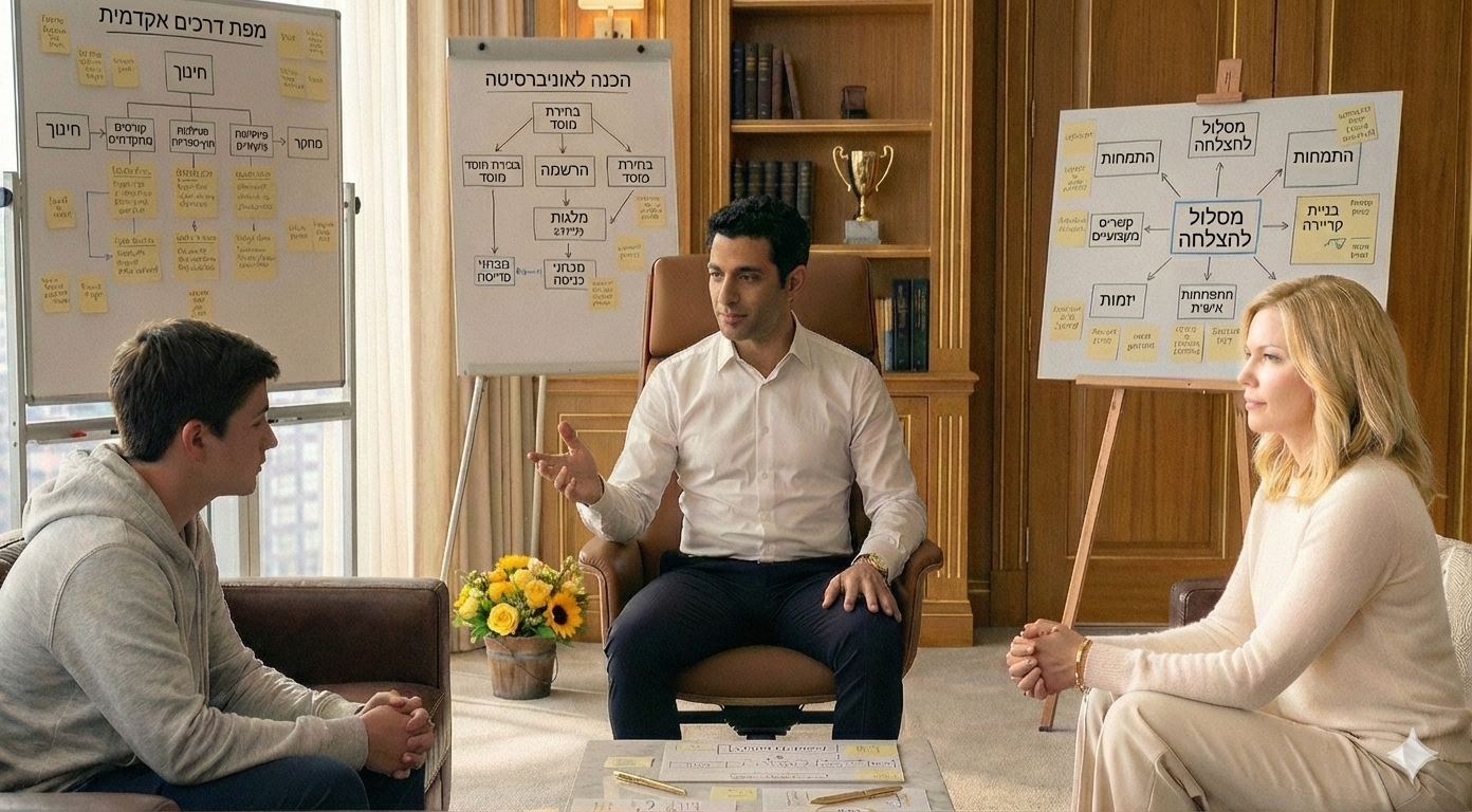 מנטור אישי שלוקח אחראיות מלאה על התוצאה - עם הקניית אסטרטגיות למידה להצלחה מותאמות בדיוק לתלמיד. המנטור מכיר את התלמיד לעומק, בונה תהליך מדויק, מלווה ברגעי לחץ, מקבל החלטות בזמן אמת ודואג שהדרך תהיה נכונה - ישירות להצלחה. מפגשים קבועים ליצירת המסלול הבטוח להצלחה, שיחות עידוד ושיחות הכנה לקראת המבחנים. המנטור דואג גם ׳להכניס את הרוח למפרשים׳ עם המוטיבציה והגישה המתאימה להצליח את שלושת החודשים הקרובים ולהביא את התוצאות הרצויות. למי שמכיר את הדרך - נתיב ההצלחה הוא ברור ובטוח. זמין עבורכם 24/7.